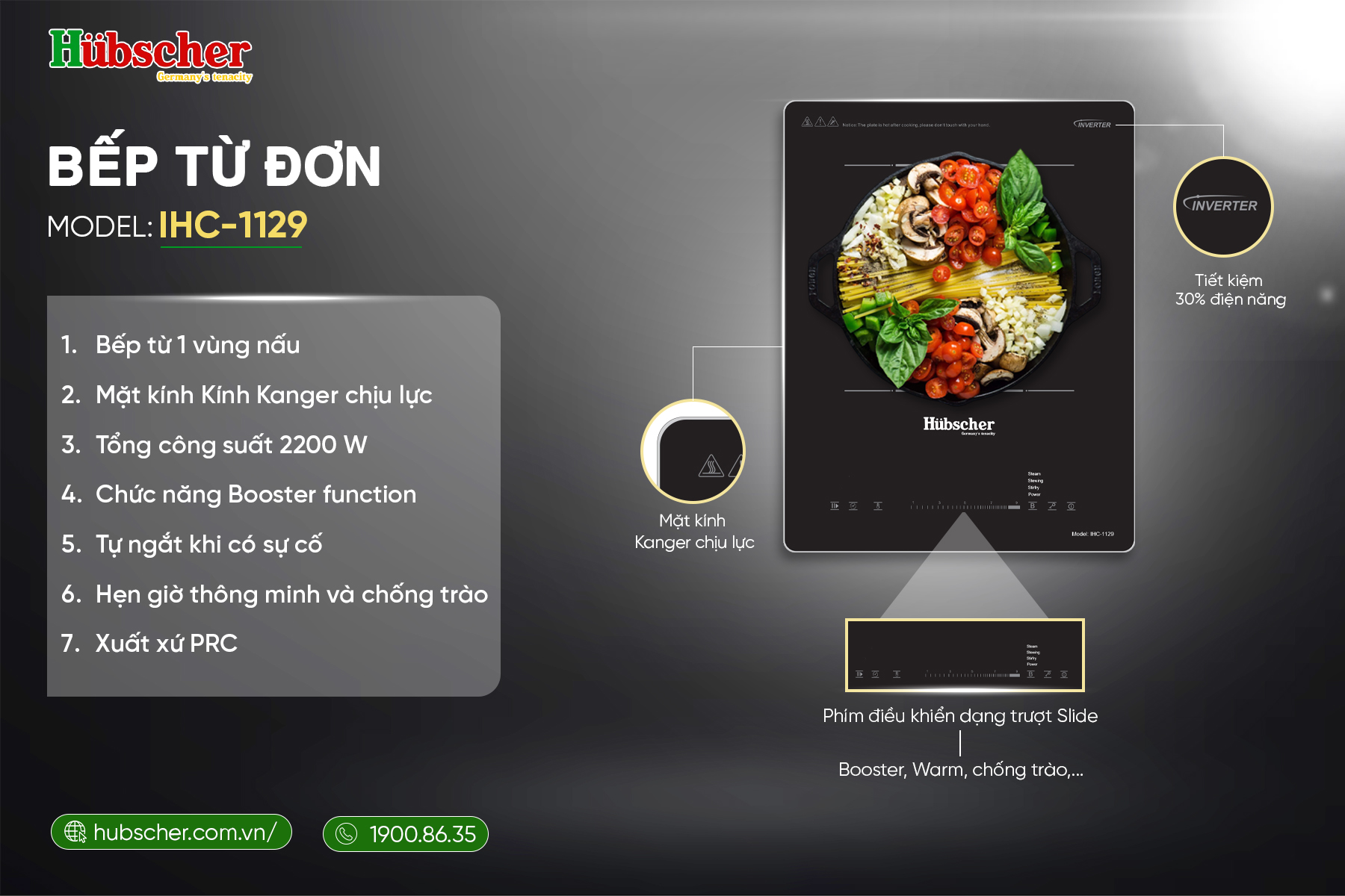 Với thiết kế nhỏ gọn, công nghệ tiết kiệm điện cùng hệ thống an toàn toàn diện, bếp từ đơn IHC-1129 mang đến trải nghiệm nấu nướng tiện nghi, bền bỉ và phù hợp với nhịp sống hiện đại của mọi gia đình.