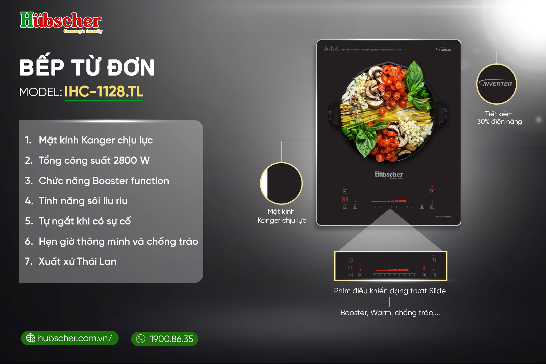 Bếp từ đơn Hubscher IHC-1128.TL – Nhỏ gọn, nấu nhanh, tiết kiệm điện cho căn bếp hiện đại