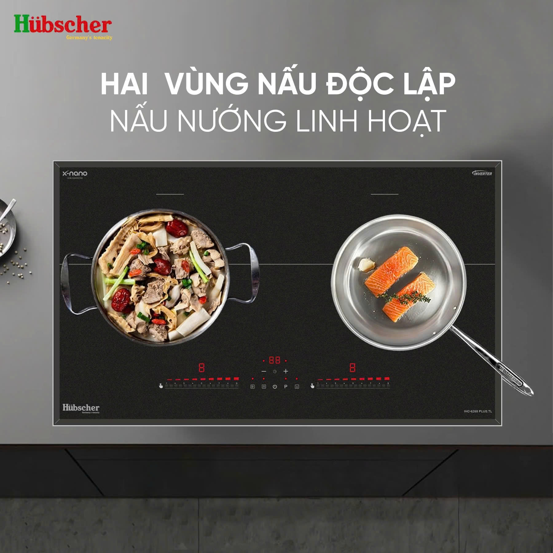 Công suất lớn, đáp ứng mọi nhu cầu nấu: Mỗi vùng nấu đạt 2600W, vận hành bởi 4 IGBT Siemens 40A, cho khả năng nấu nhanh và ổn định.