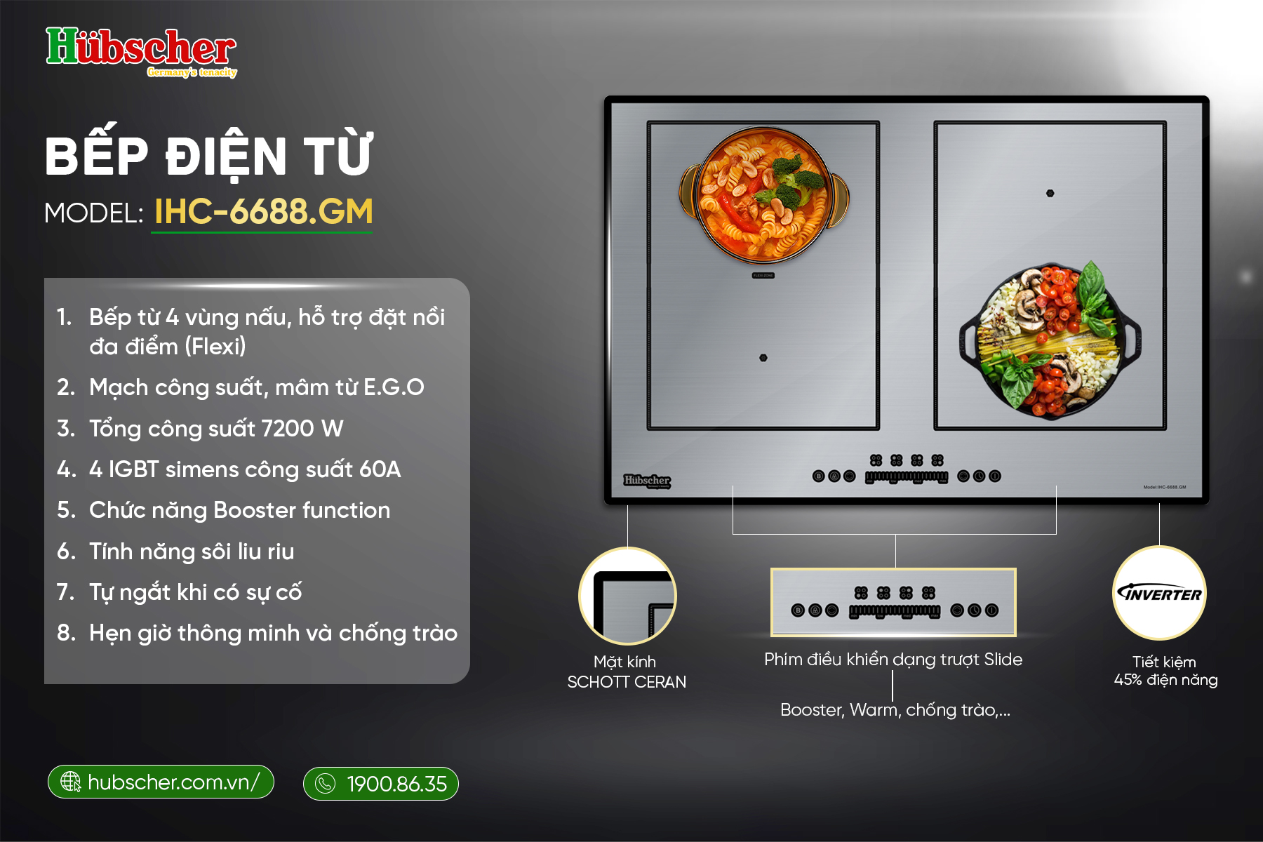 Bếp từ đôi Hubscher IHC-6688.GM – Chuẩn mực bếp từ cao cấp với công nghệ Đức và hiệu suất vượt trội