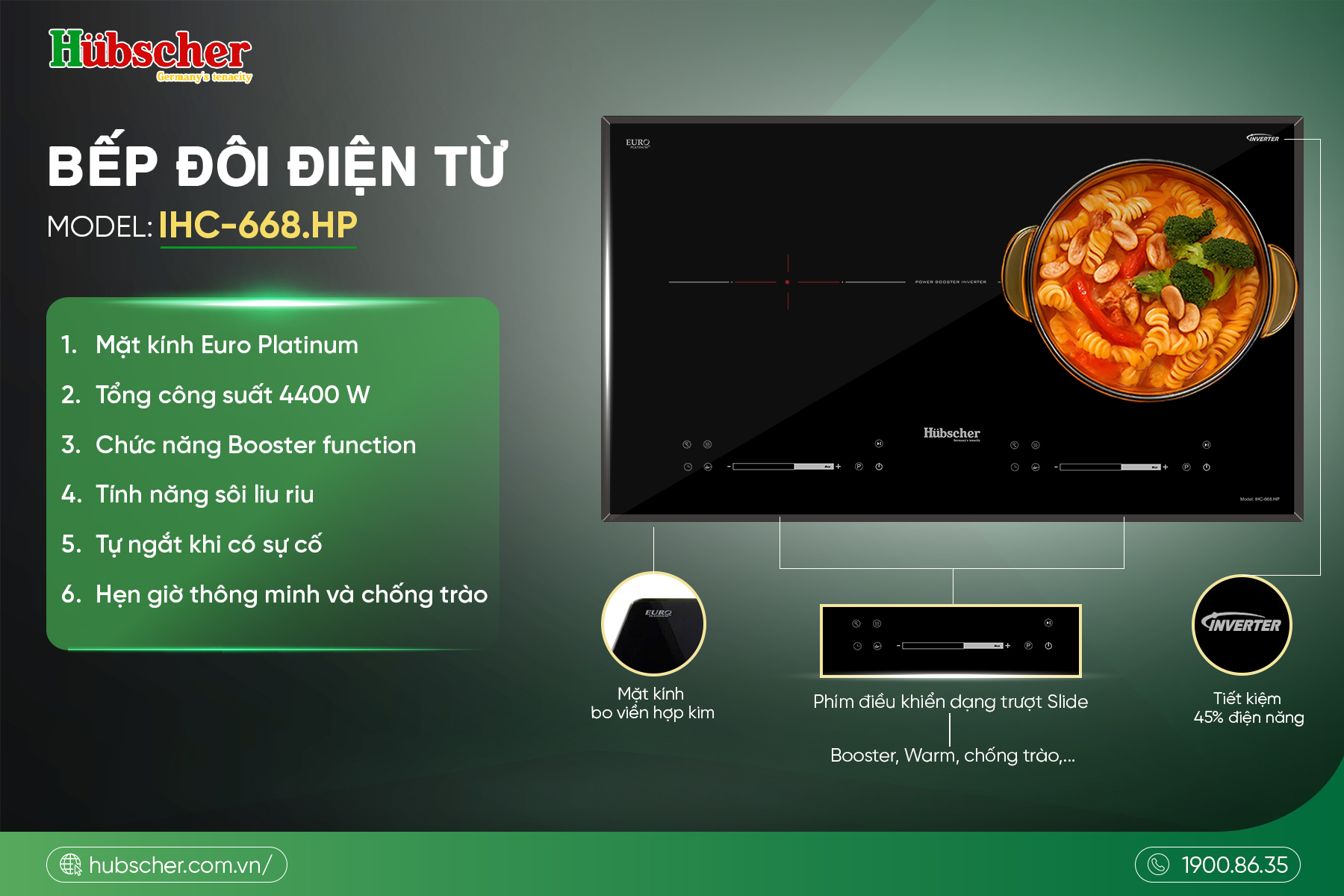 Trong xu hướng không gian sống tối giản và tiện nghi, một chiếc bếp từ đôi hiệu suất cao không chỉ giúp việc nấu ăn nhanh hơn mà còn góp phần nâng tầm thẩm mỹ tổng thể căn bếp. IHC-668.HP được phát triển nhằm mang lại sự cân bằng giữa công nghệ, an toàn và tiết kiệm năng lượng cho gia đình hiện đại.