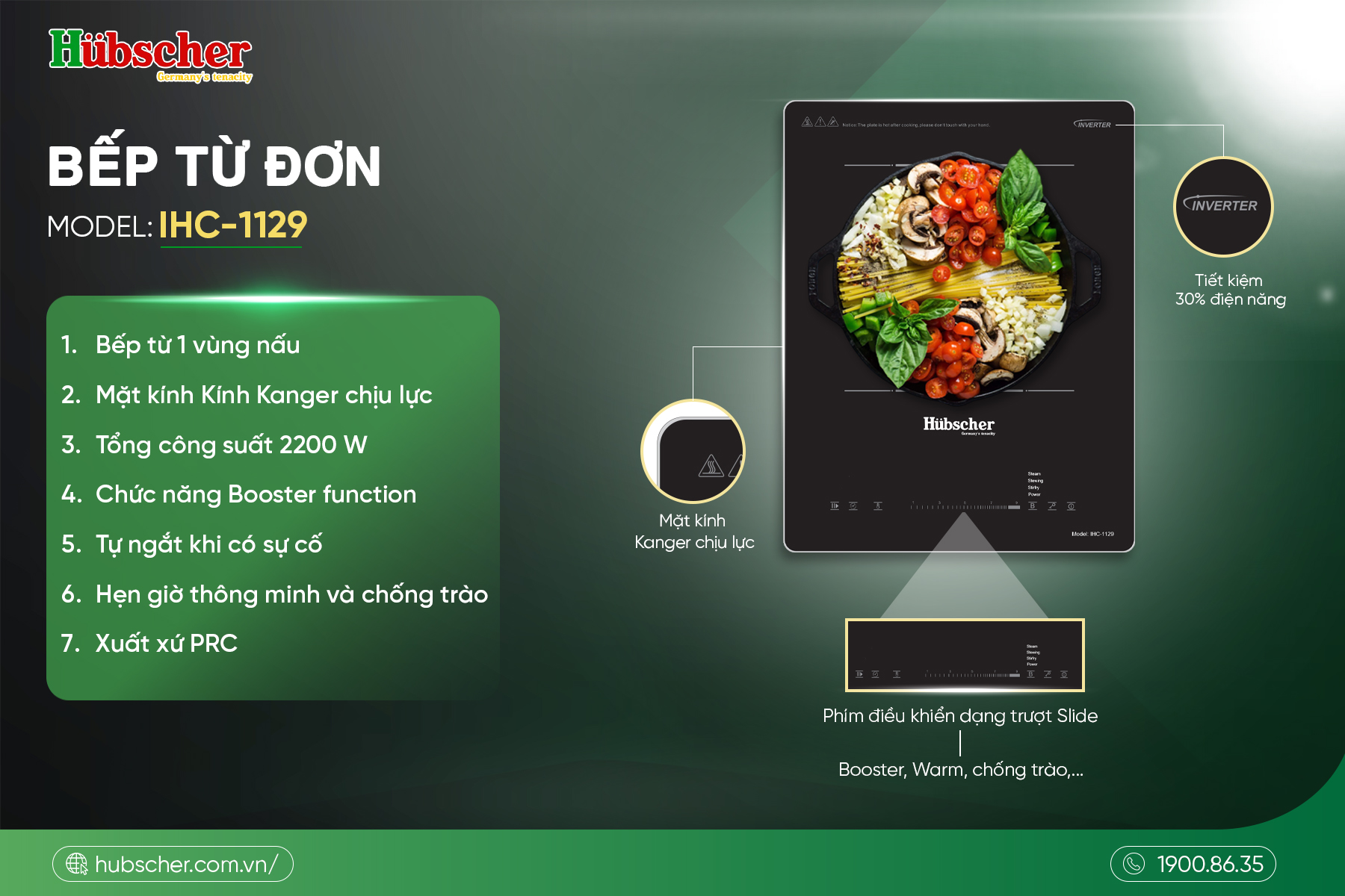 Với thiết kế nhỏ gọn, công nghệ tiết kiệm điện cùng hệ thống an toàn toàn diện, bếp từ đơn IHC-1129 mang đến trải nghiệm nấu nướng tiện nghi, bền bỉ và phù hợp với nhịp sống hiện đại của mọi gia đình.