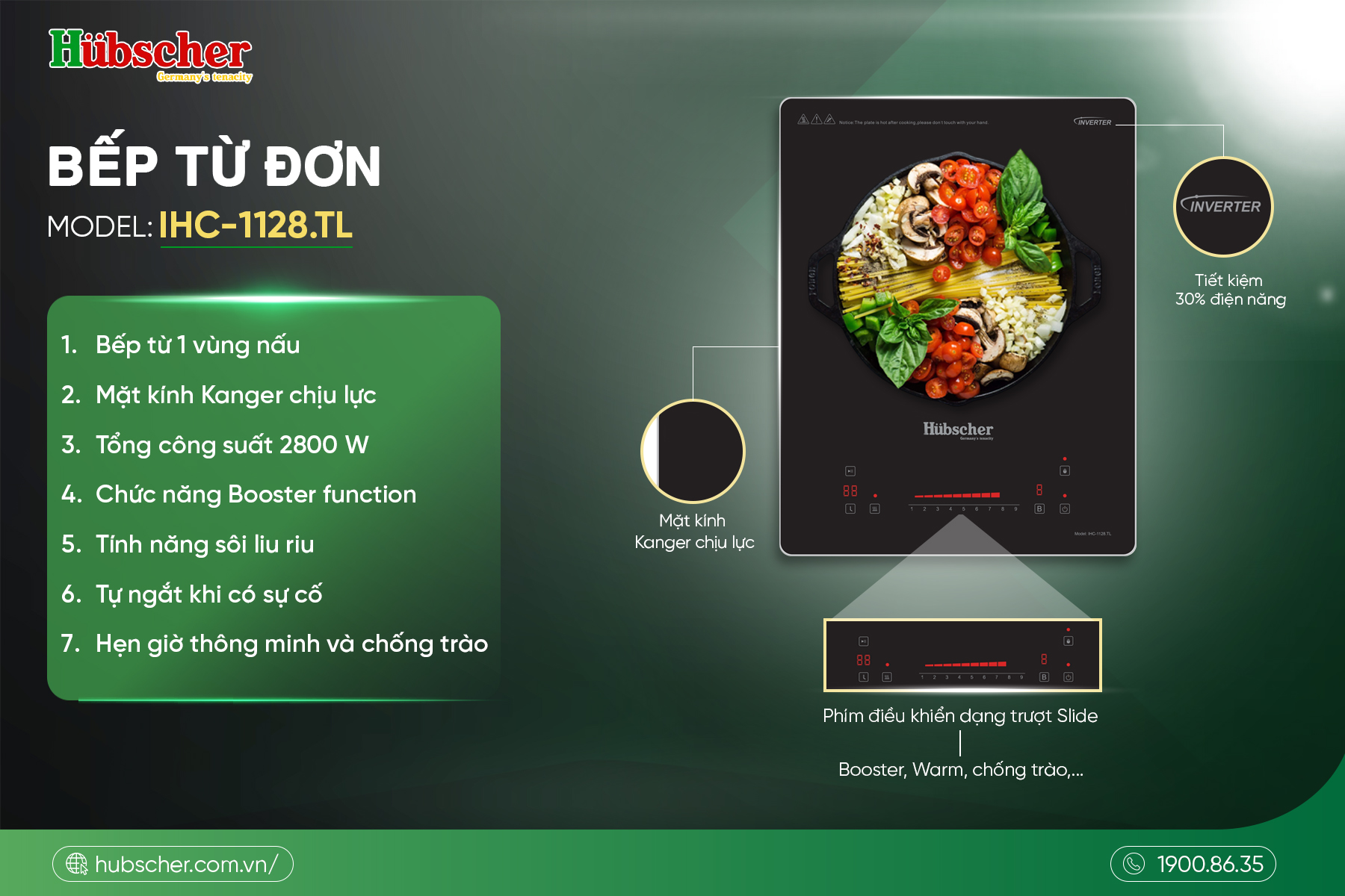 Bếp từ đơn Hubscher IHC-1128.TL – Nhỏ gọn, nấu nhanh, tiết kiệm điện cho căn bếp hiện đại