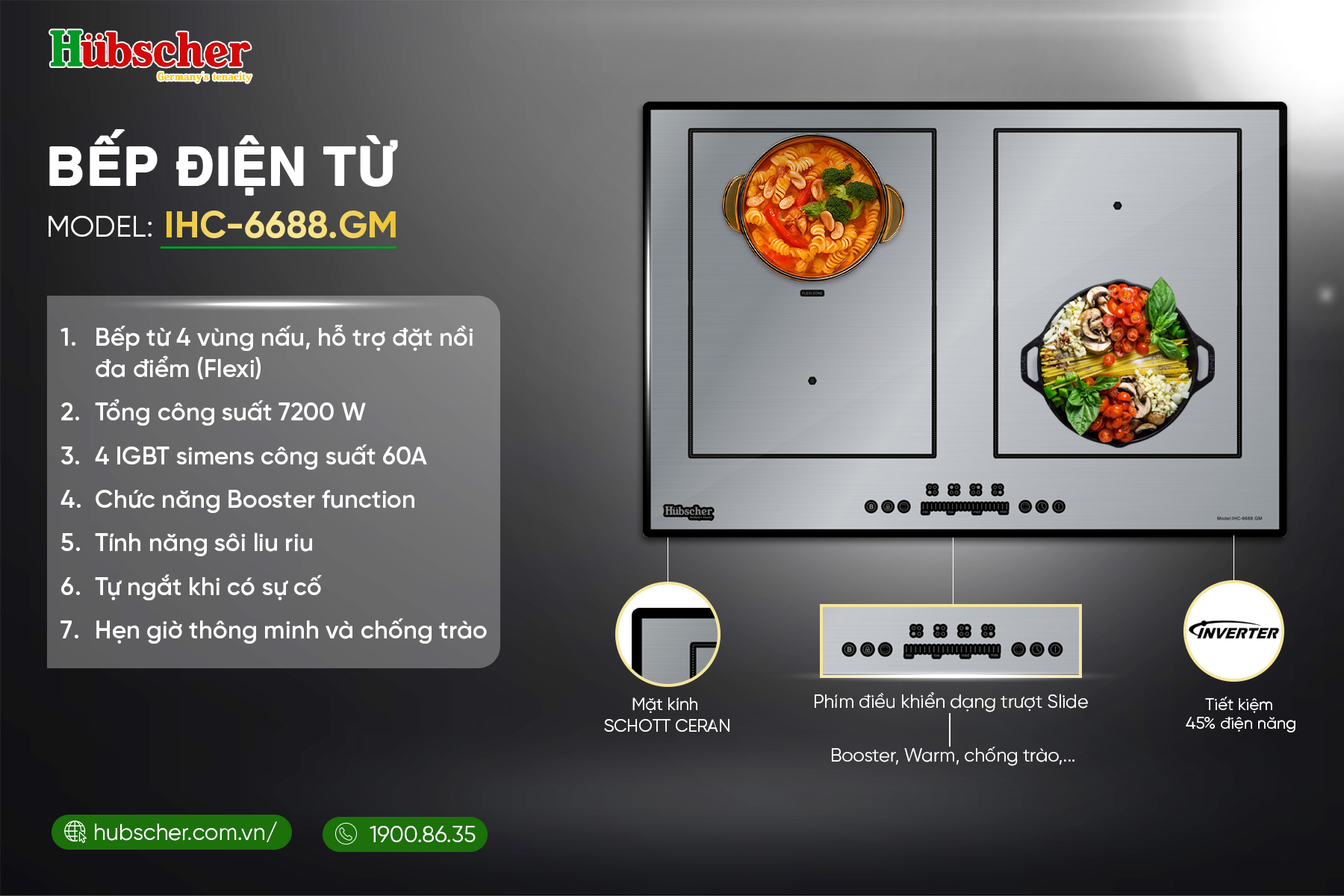Bếp từ đôi Hubscher IHC-6688.GM – Chuẩn mực bếp từ cao cấp với công nghệ Đức và hiệu suất vượt trội