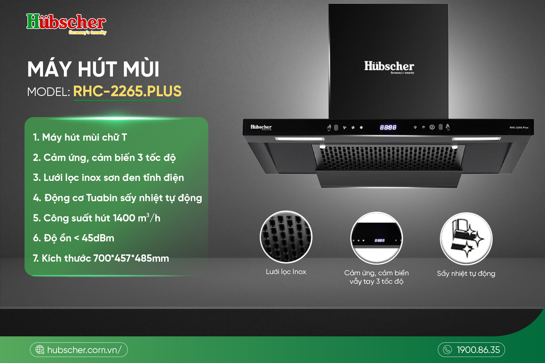 Với thiết kế mạnh mẽ, công nghệ tự làm sạch tiên tiến cùng hiệu suất hút vượt trội, máy hút mùi RHC-2265.plus mang đến giải pháp giữ không gian bếp luôn trong lành, góp phần nâng cao chất lượng sống và sự thoải mái trong từng khoảnh khắc nấu nướng.