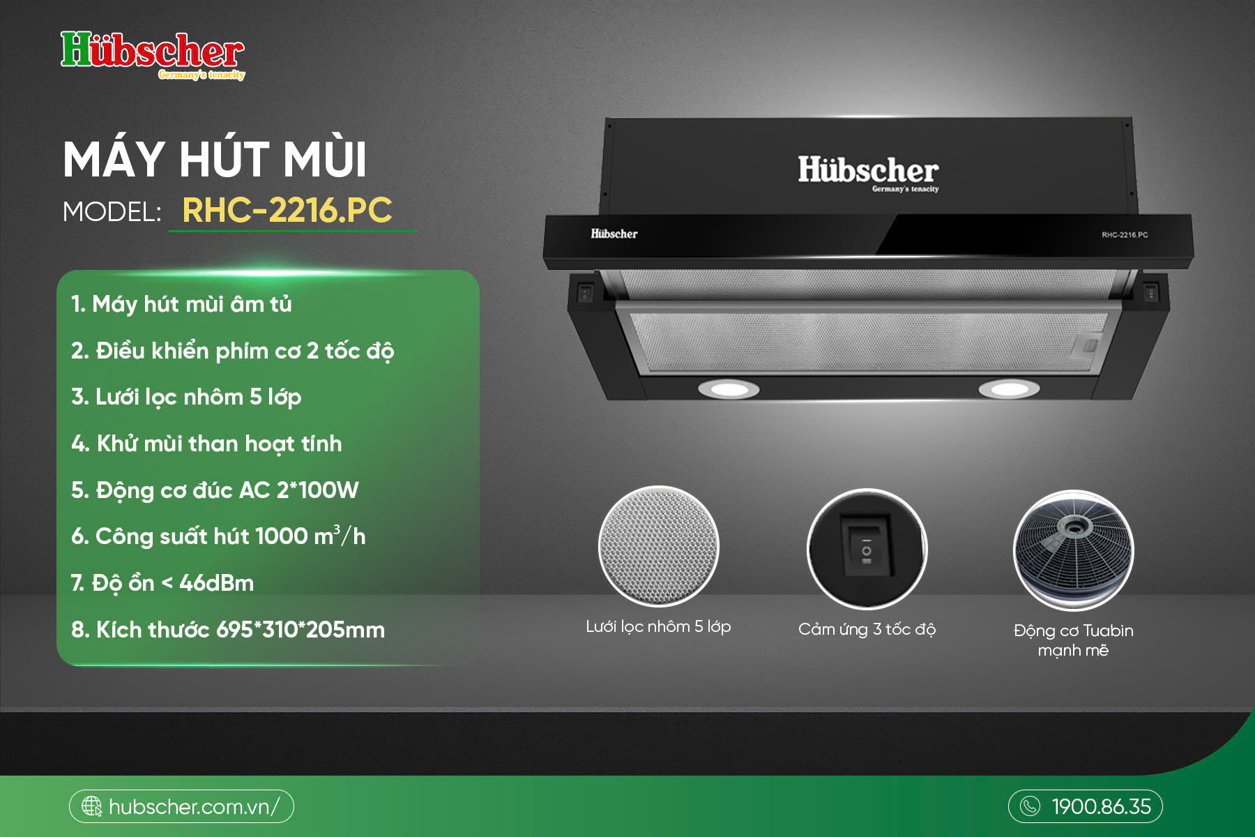 THÔNG SỐ KỸ THUẬT MÁY HÚT MÙI RHC-2216.PC