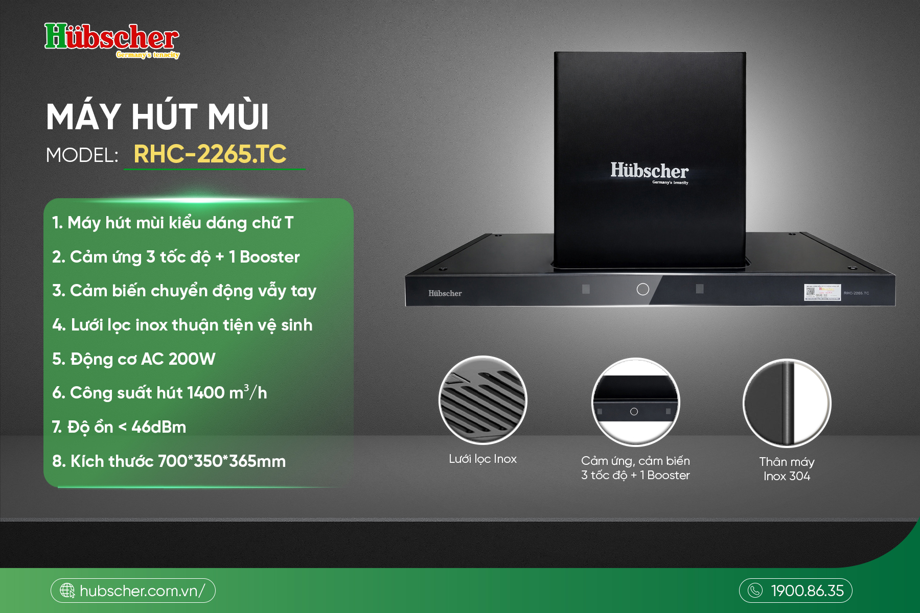 Sở hữu thiết kế chữ T sang trọng, công suất hút mạnh mẽ cùng nhiều tính năng tiện lợi như điều khiển cảm ứng, cảm biến vẫy tay và chế độ Booster, máy hút mùi RHC-2265.TC mang đến giải pháp hút mùi hiệu quả cho không gian bếp gia đình.